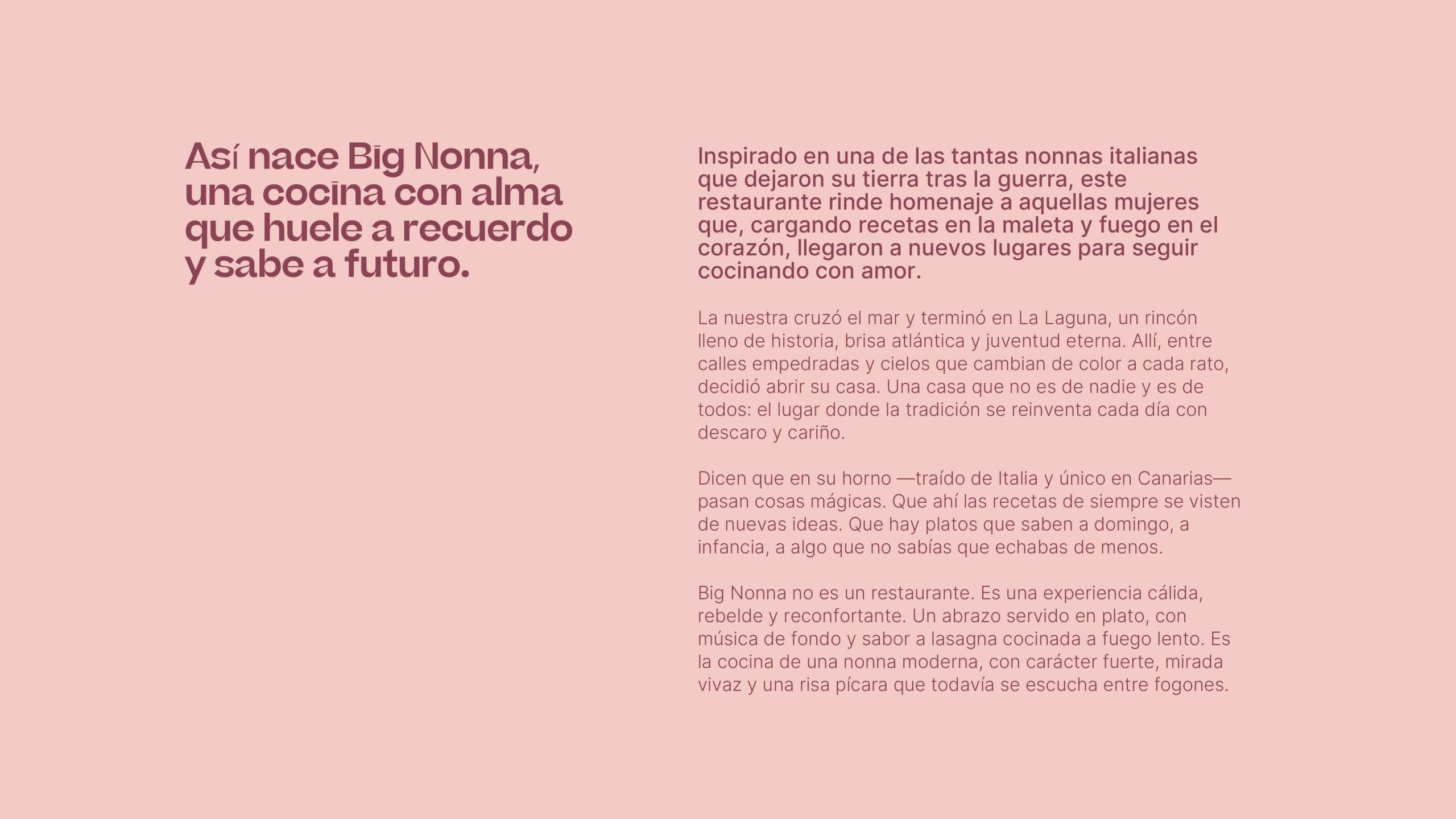 El resultado es una marca que combina cercanía y carácter, que habla con la voz de una nonna moderna: entrañable, acogedora y con un punto de picardía. Una identidad que huele a recuerdo, sabe a futuro y convierte la experiencia de comer en Big Nonna en algo más que una comida: en un abrazo servido en plato.